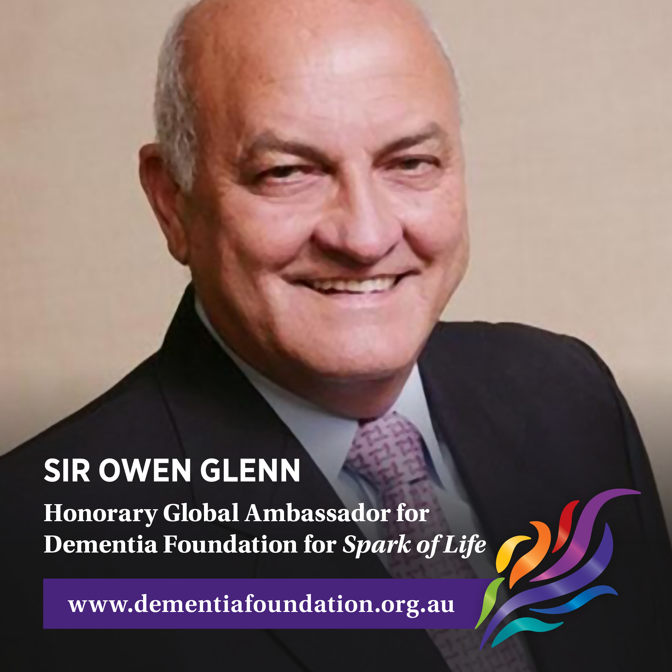 It is with great pleasure and appreciation that we announce today that Acclaimed Philanthropist Sir Owen Glenn of the Glenn Family Foundation is Honorary Global Ambassador for Dementia Foundation for Spark of Life.